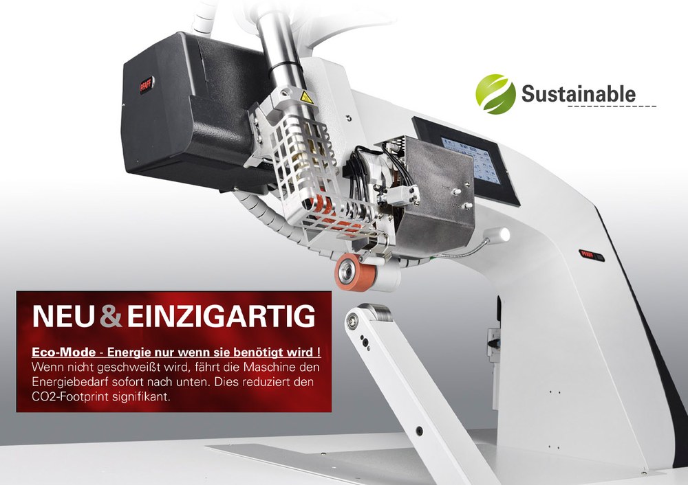 Premium Heißluft-Schweißmaschine für die kontinuierliche Nahtabdichtung bei wasserabstoßenden, wasserdichten und atmungsaktiven Materialien mit neue technischen Merkmalen (auch für anspruchsvolle, industrielle Applikationen)