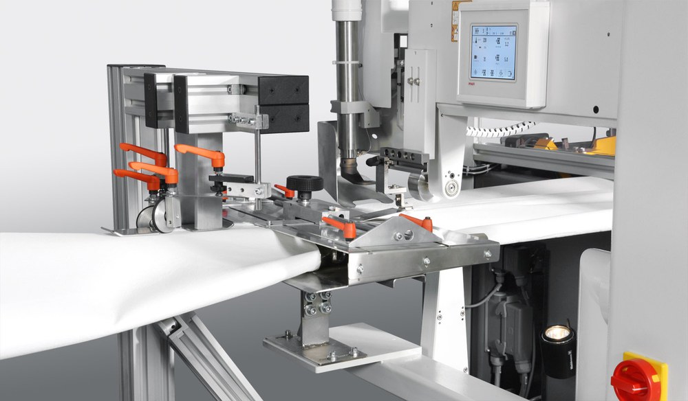 - 3-needle double-chain-stitch sewing head (feed-of-the-arm)