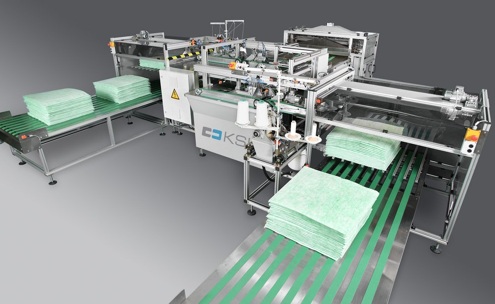 The KL 970 is a high-efficient and full-automatic manufacturing unit for manufacture single filter pockets, e.g. filter pocket cassetts for air filtration.The systems (lightweight construction) have a modular structure and can be configured and implemented individually according to customer requirements (material and application). They are fully PLC controlled and operated via a modern HMI panel.