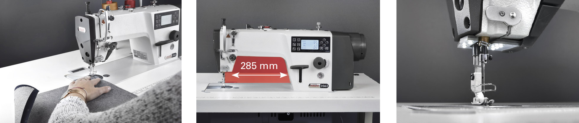 Industrieller Steppstich-Schnellnäher für alle Geradstich-Arbeiten an leichten bis mittelschweren Materialien mit einem hervorragendem Preis-/Leistungsverhältnis. Er ist serienmäßig mit Untertransport und automatischen Funktionen wie Nähfußlüftung, Nahtverriegelung und Fadenabschneider ausgestattet. Bei einer Version kommt der Kurzfadenabschneider (-900/82) zum Einsatz, der eine Restenfadenlänge von max. 3 mm ermöglicht. Das Bedienfeld ist im Maschinenarm integriert - es erlaubt eine schnelle, intuitive Einstellung für individuelles Nähen. Die Minimalschmierung von Greifer und Nadelstange verhindert eine Verschmutzung des Nähmaterials und sorgt für eine lange Einsatzdauer des PFAFF-Produktes.