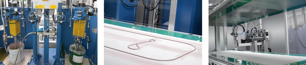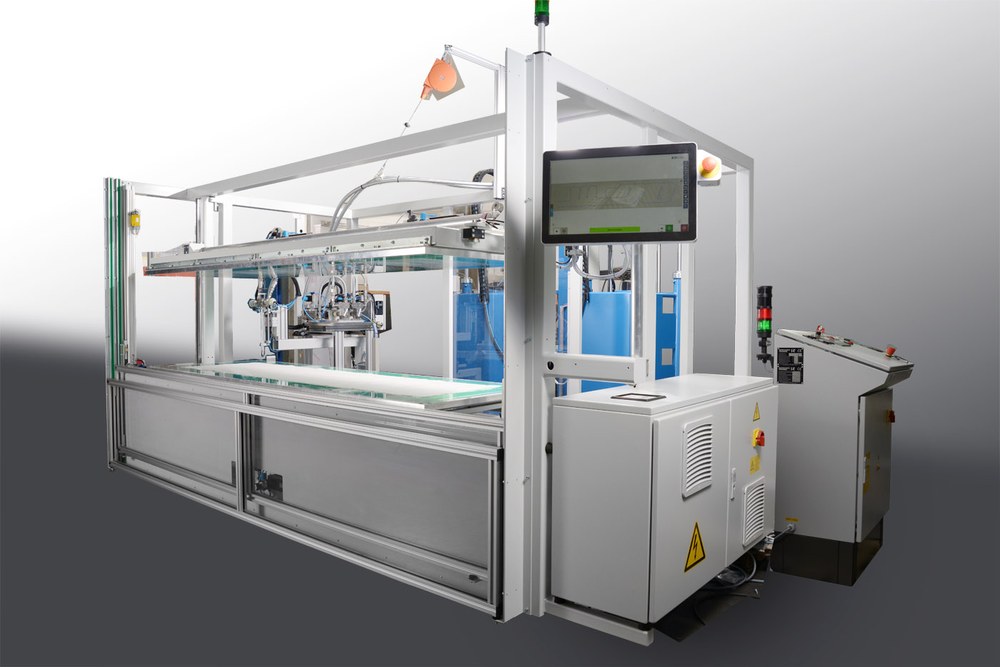 Reproducible constant height of the silicone application is guaranteed by servo-motorically movable distance height adjustment